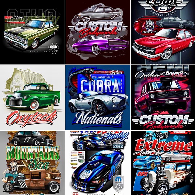 For nearly thirty years, Ryan has specialised in automotive artwork and illustration, particularly t-shirt and event artwork. With practical experience in the screen print industry, he also understand the complexities of designing for print - and is also an expert colour separation artist.